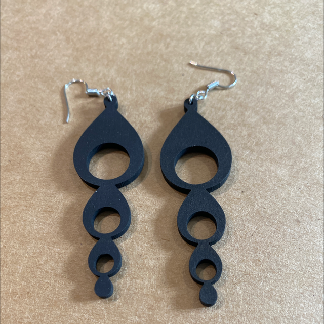 Paire de boucles en mdf 3mm teintées en noir mat.